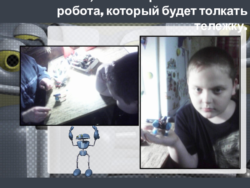 Слайд 17Решили, что соберём маленького робота, который будет толкать тележку.