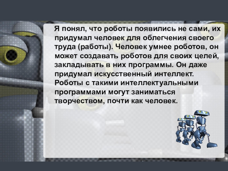 Слайд 13 Я понял, что роботы появились не сами, их придумал