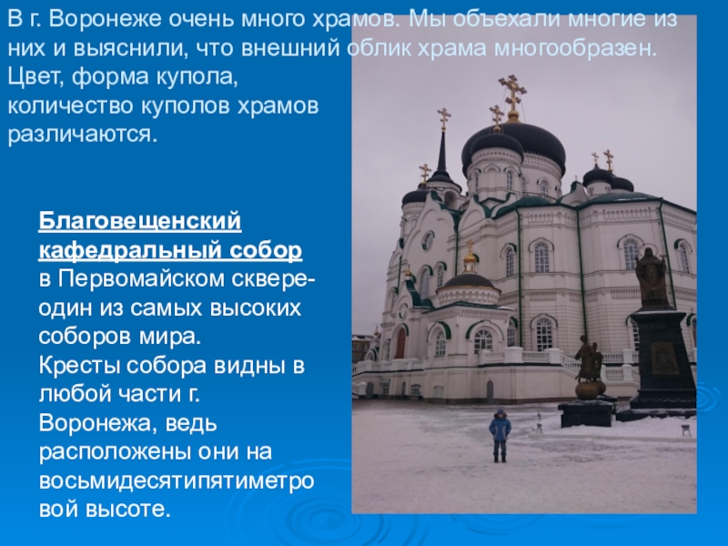В г. Воронеже очень много храмов. Мы объехали многие из них и выяснили, что внешний облик храма многообразен.