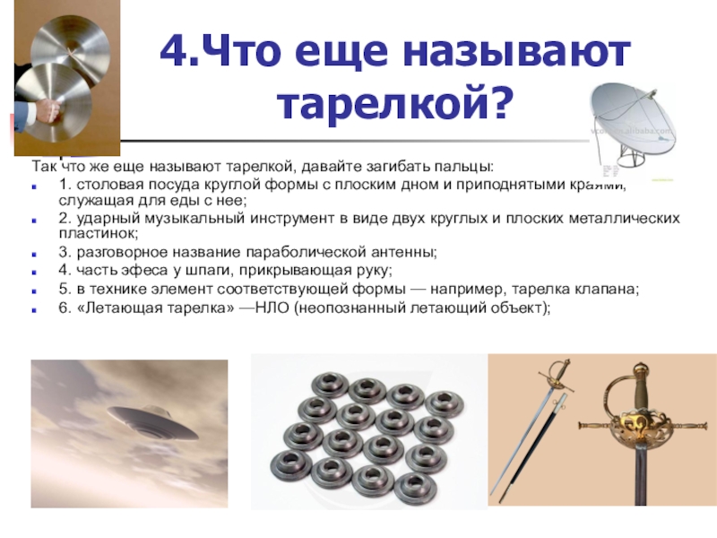 Слайд 104.Что еще называют тарелкой?