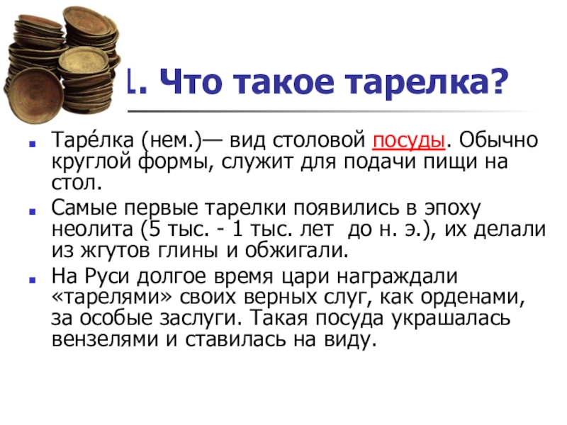 Слайд 61. Что такое тарелка?