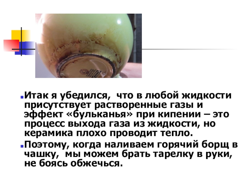 Поэтому, когда наливаем горячий борщ в чашку, мы можем брать тарелку в руки, не боясь обжечься.