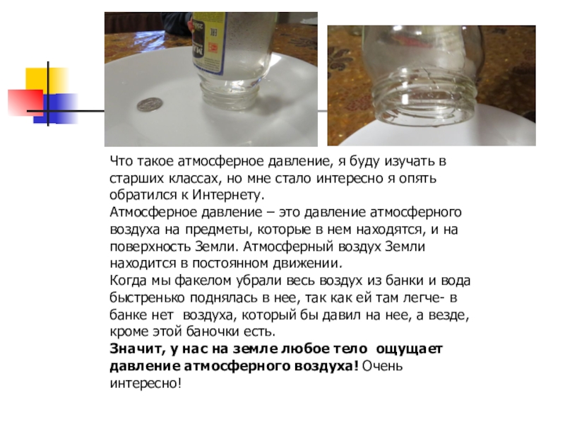 Слайд 20Что такое атмосферное давление, я буду изучать в старших классах, но
