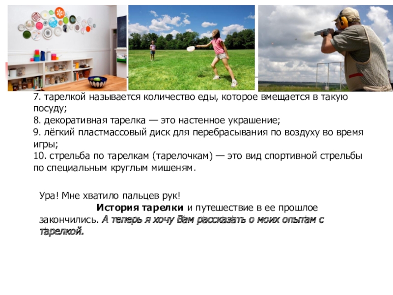 7. тарелкой называется количество еды, которое вмещается в такую посуду;