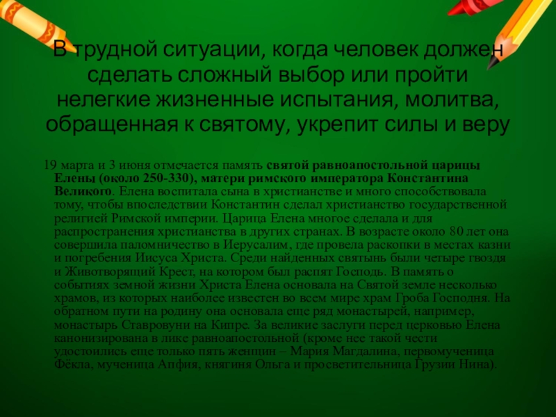 Моли Бога о мне, святая Елена, яко аз усердно к