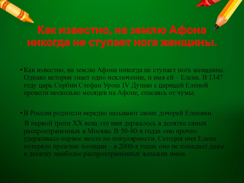 Слайд 19Как известно, на землю Афона никогда не ступает нога женщины.
