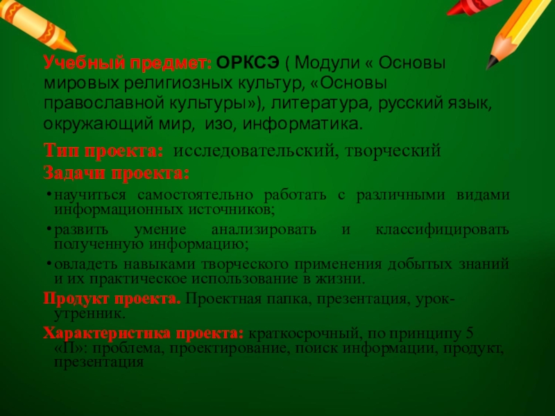 Слайд 4Учебный предмет: ОРКСЭ ( Модули « Основы мировых религиозных культур, «Основы