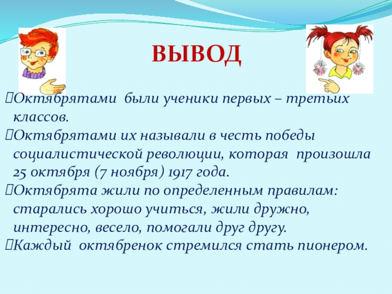Октябрята – дружные ребята, читают и рисуют, играют и поют, весело живут.