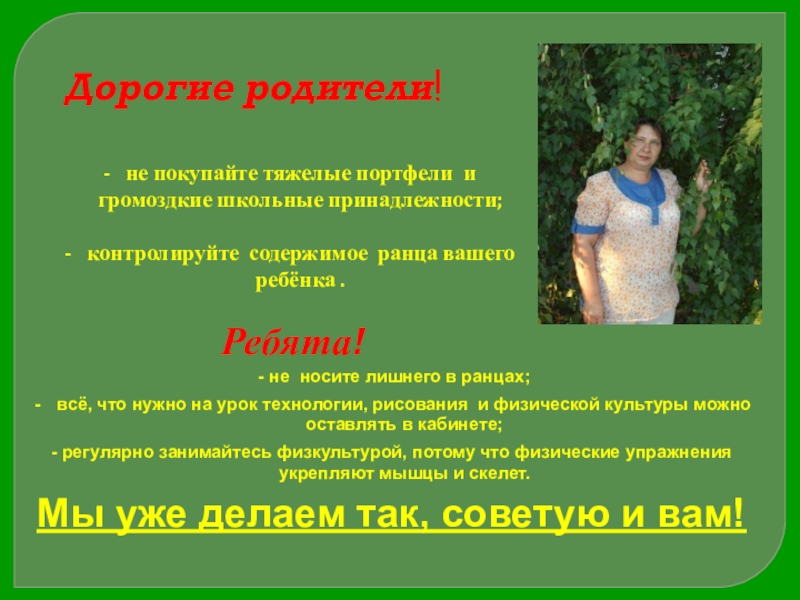 - не носите лишнего в ранцах;