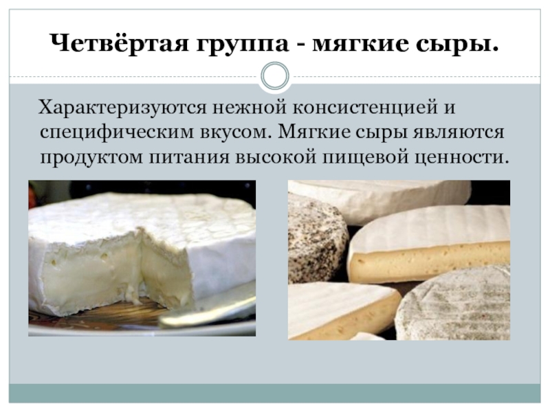 специфическим вкусом. Мягкие сыры являются продуктом питания высокой пищевой ценности.