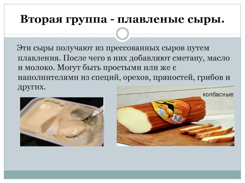 прессованных сыров путем плавления. После чего в них добавляют сметану, масло и молоко. Могут быть простыми или же с наполнителями из специй, орехов, пряностей, грибов и других.