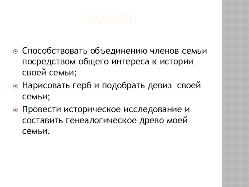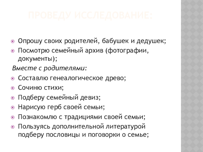 Провести историческое исследование и составить генеалогическое древо моей семьи.