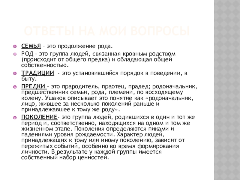 Слайд 7ОТВЕТЫ НА МОИ ВОПРОСЫ