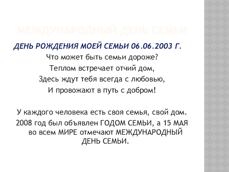 Слайд 6МЕЖДУНАРОДНЫЙ ДЕНЬ СЕМЬИ