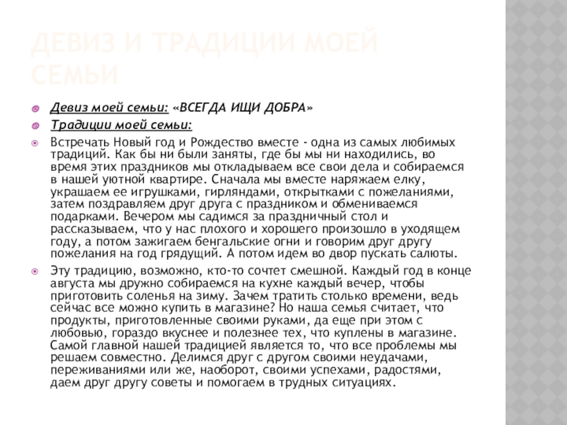 Слайд 8ДЕВИЗ И ТРАДИЦИИ МОЕЙ СЕМЬИ