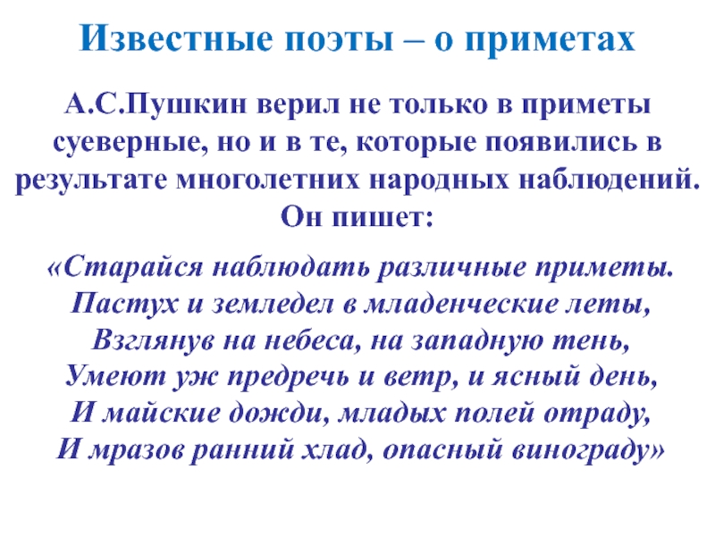 Известные поэты – о приметах