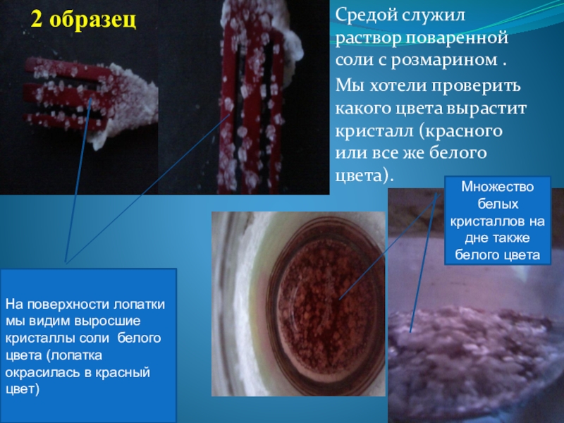 На поверхности лопатки мы видим выросшие кристаллы соли белого цвета (лопатка окрасилась в красный цвет)