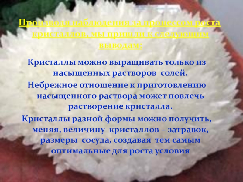 Множество белых кристаллов на дне также белого цвета