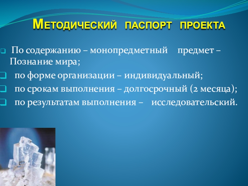 Методический паспорт проекта