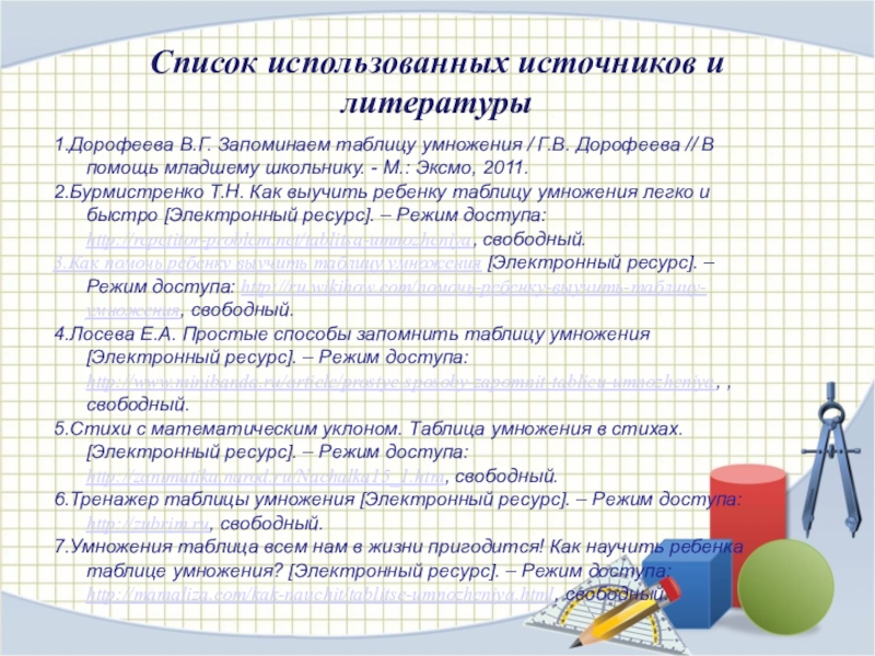 7.Изготовить «шпаргалку» для второклассников по теме «Таблица умножения на 6,7,8,9»