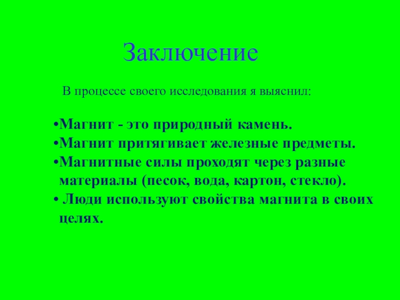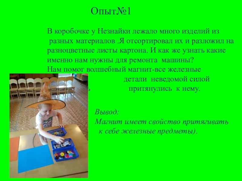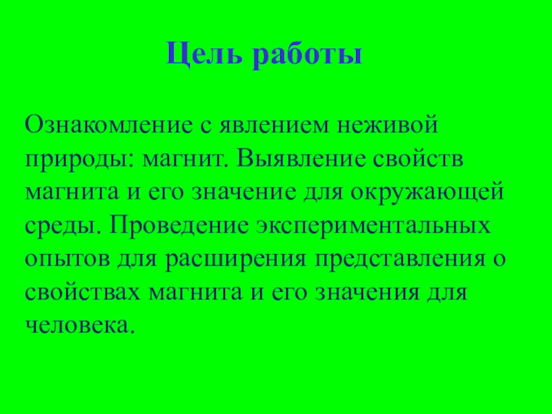 Ознакомление с явлением неживой природы: магнит. Выявление свойств магнита и его значение для окружающей среды. Проведение экспериментальных опытов для расширения представления о свойствах магнита и его значения для человека.