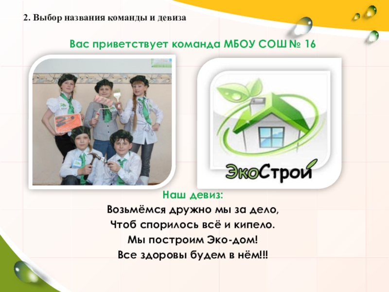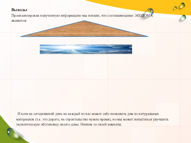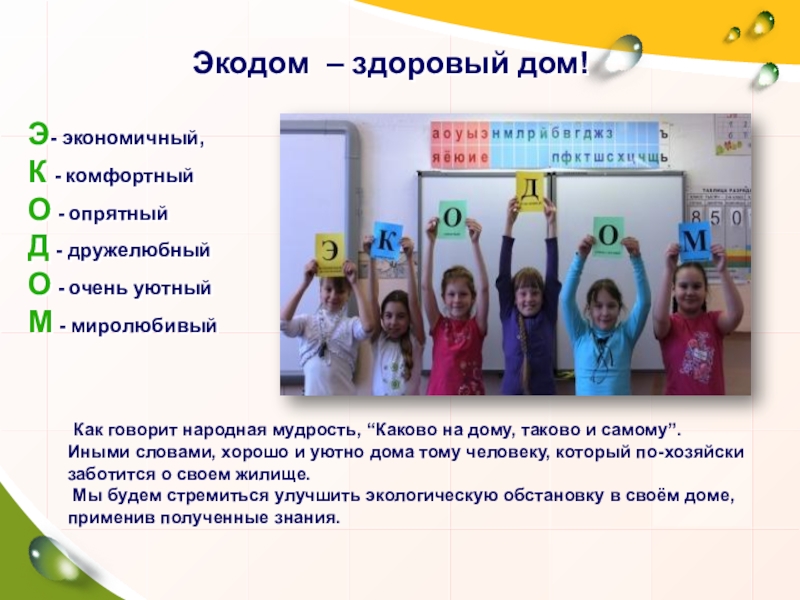 Мы будем стремиться улучшить экологическую обстановку в своём доме, применив полученные знания.