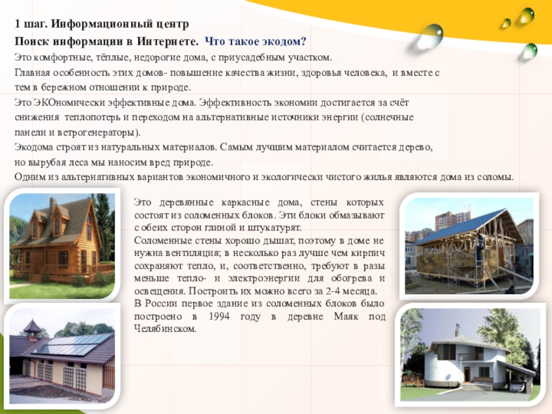 Это деревянные каркасные дома, стены которых состоят из соломенных блоков. Эти блоки обмазывают с обеих сторон глиной и штукатурят.
