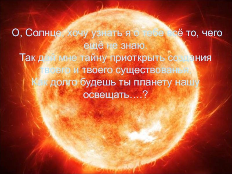 Слайд 5О, Солнце, хочу узнать я о тебе всё то, чего ещё