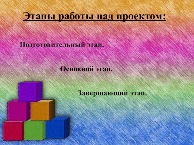 Этапы работы над проектом:Подготовительный этап.Основной этап.Завершающий этап.