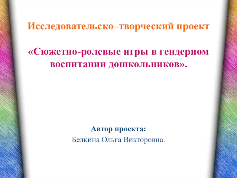 Исследовательско–творческий проект   «Сюжетно-ролевые игры в гендерном воспитании дошкольников».Автор проекта: Белкина Ольга Викторовна.