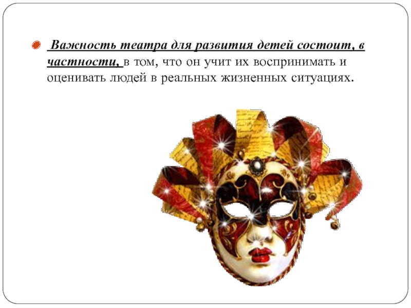 Слайд 7 Важность театра для развития детей состоит, в частности, в том, что