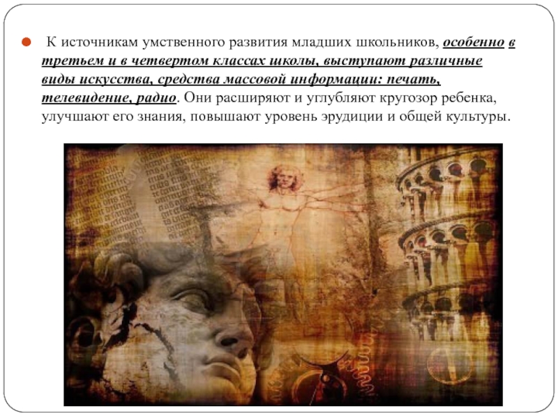 Слайд 2 К источникам умственного развития младших школьников, особенно в третьем и в