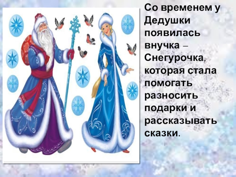 Слайд 7Со временем у Дедушки появилась внучка – Снегурочка, которая стала помогать
