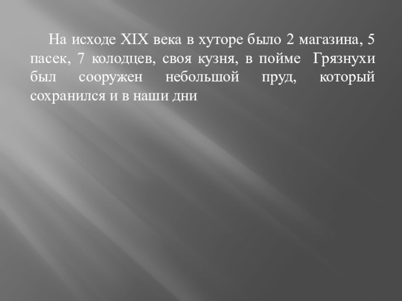 Слайд 9 На исходе XIX века в хуторе было 2 магазина,