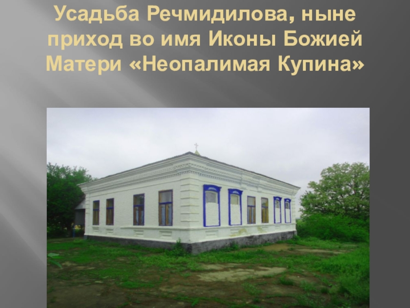 Слайд 21Усадьба Речмидилова, ныне приход во имя Иконы Божией Матери «Неопалимая Купина»