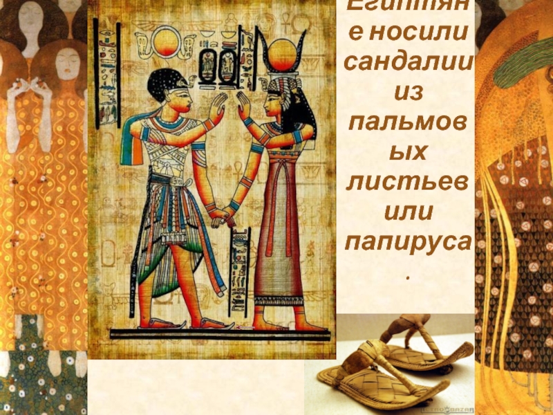 Слайд 5Египтяне носили сандалии из пальмовых листьев или папируса.