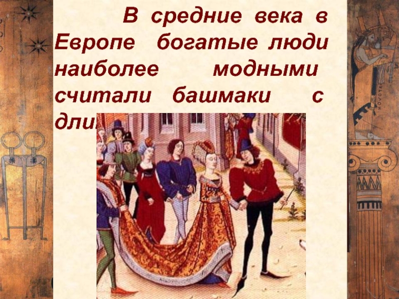 В средние века в Европе богатые люди наиболее модными считали башмаки с длинными