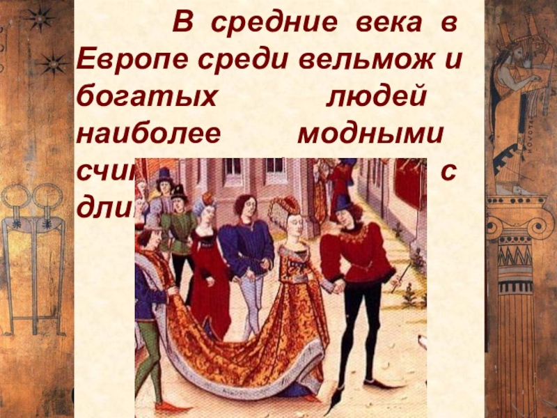 В средние века в Европе среди вельмож и богатых людей наиболее модными считались башмаки