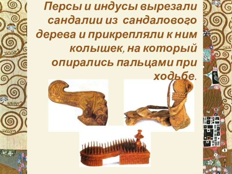 Персы и индусы вырезали сандалии из сандалового дерева и прикрепляли к