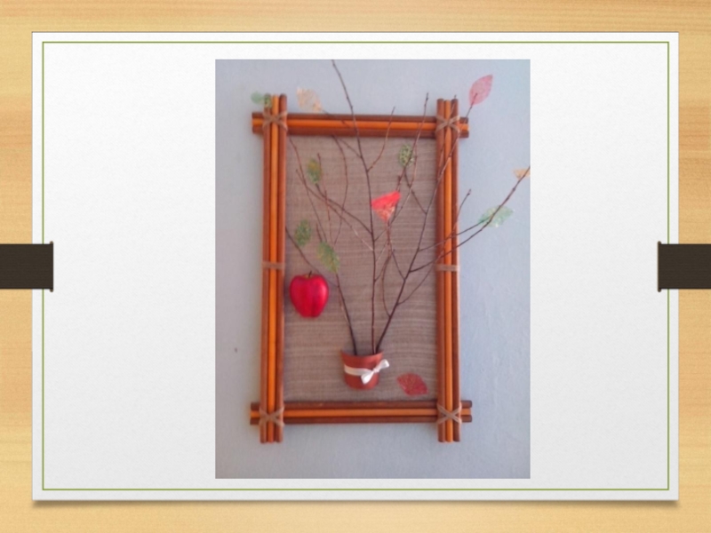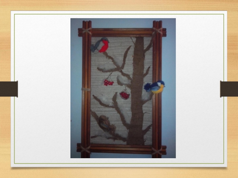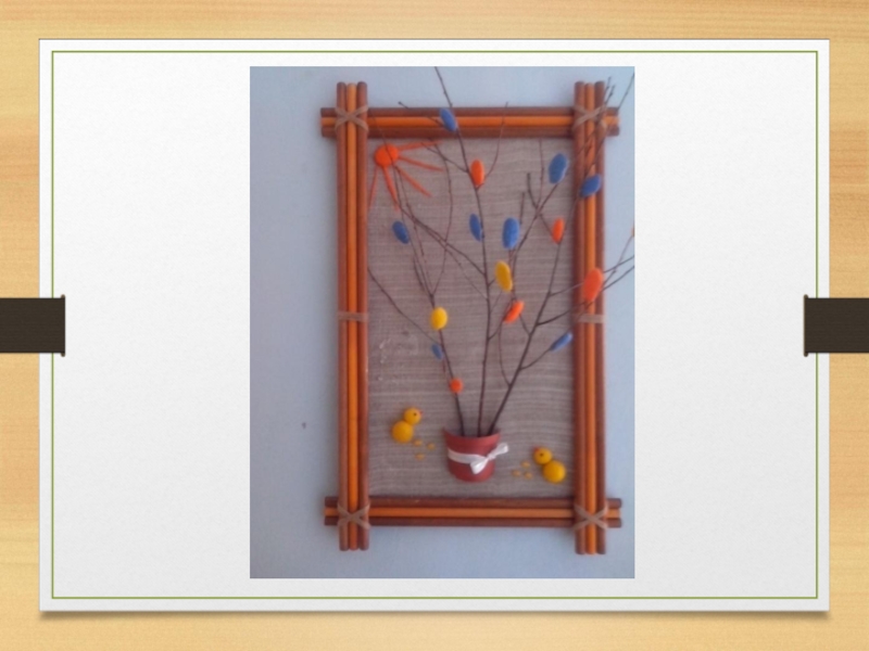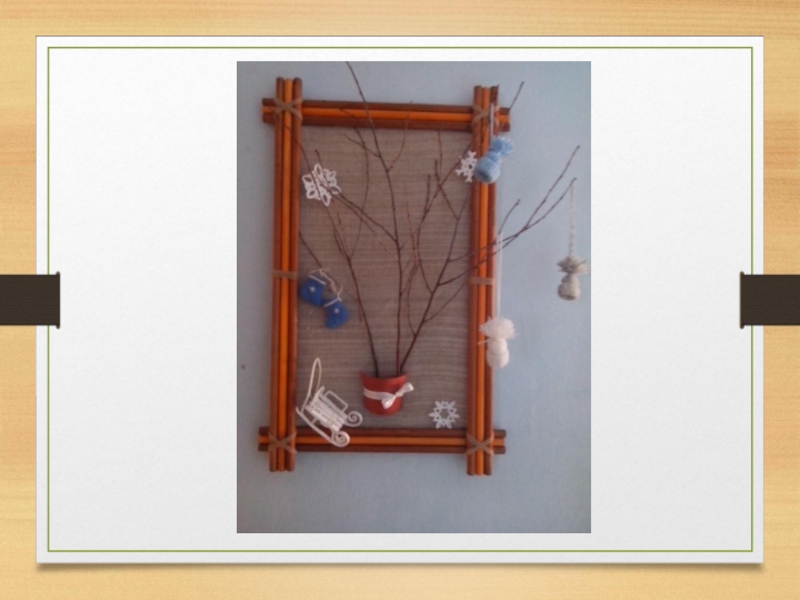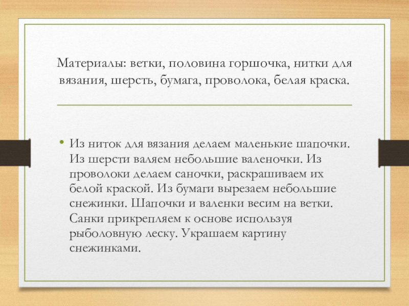 Материалы: ветки, половина горшочка, нитки для вязания, шерсть, бумага, проволока, белая краска.