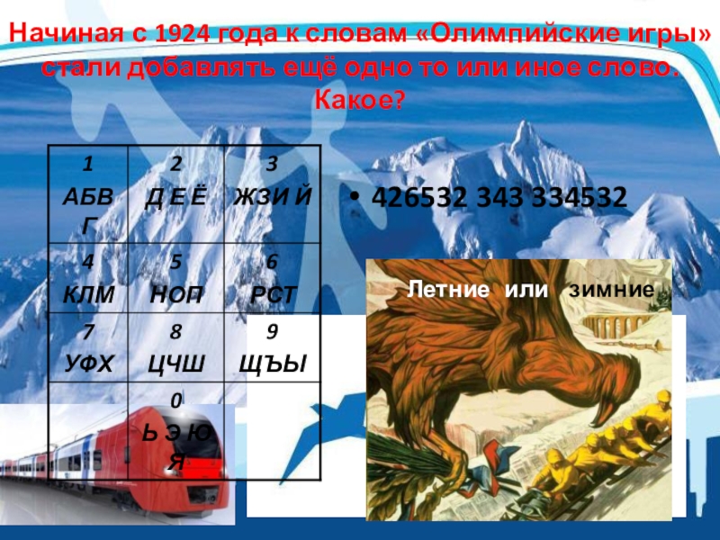 Слайд 27Начиная с 1924 года к словам «Олимпийские игры» стали добавлять ещё