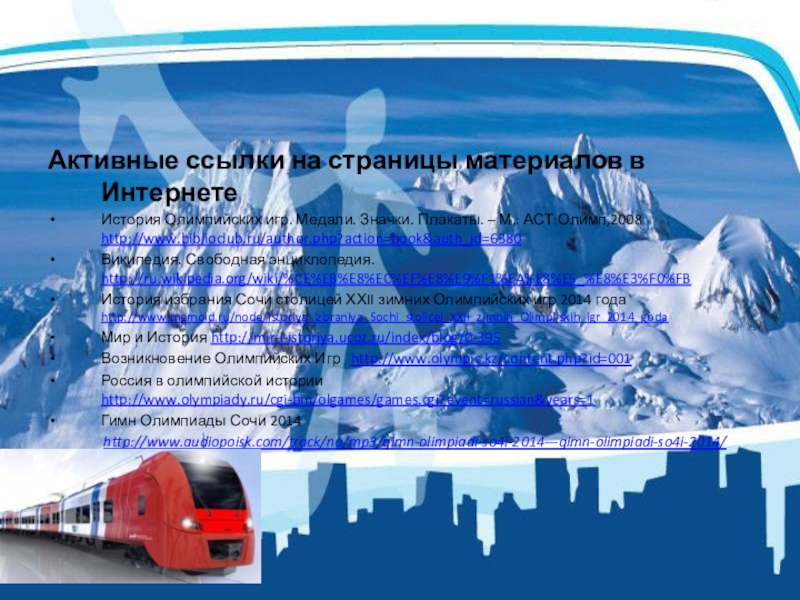 Слайд 33Активные ссылки на страницы материалов в Интернете