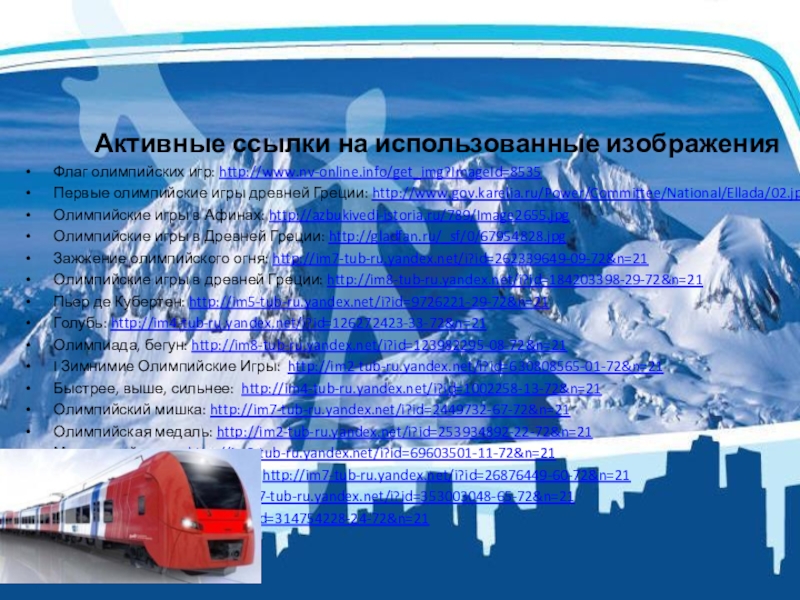 Олимпийский поезд ласточка: http://im7-tub-ru.yandex.net/i?id=159073284-12-72&n=21