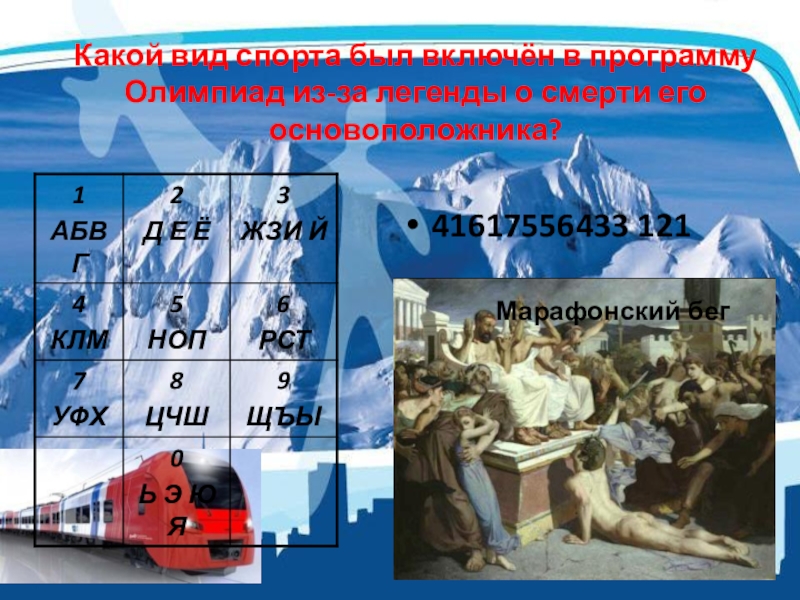 Слайд 24Какой вид спорта был включён в программу Олимпиад из-за легенды о
