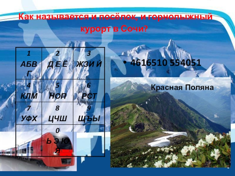 Слайд 23 Как называется и посёлок, и горнолыжный курорт в Сочи?