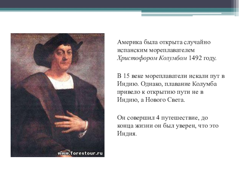 15 веке мореплаватели искали пут в Индию. Однако, плавание Колумба привело к открытию пути не в Индию, а Нового Света.