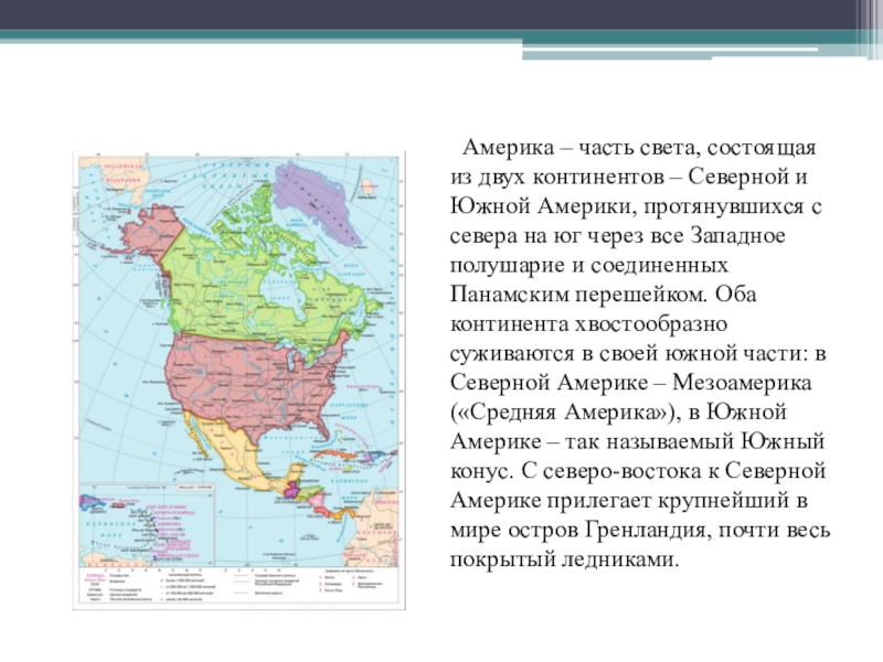 Слайд 2  Америка – часть света, состоящая из двух континентов – Северной