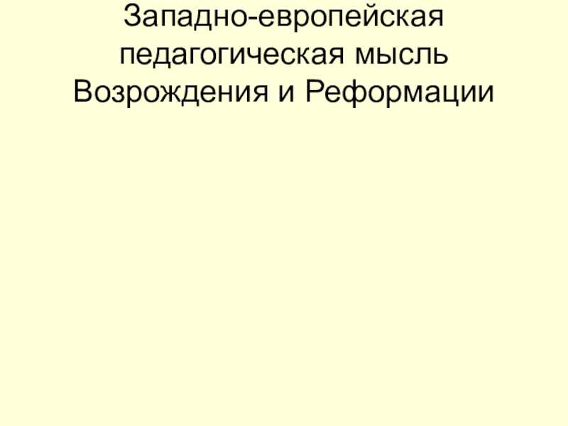 Западно-европейская педагогическая мысль Возрождения и Реформации.