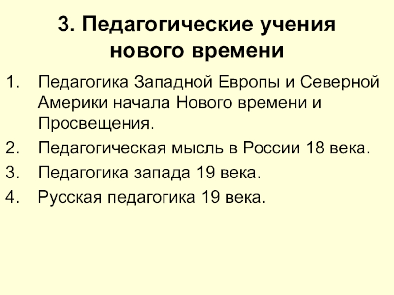 3. Педагогические учения  нового времениПедагогика Западной Европы и Северной Америки начала Нового времени и Просвещения.Педагогическая мысль