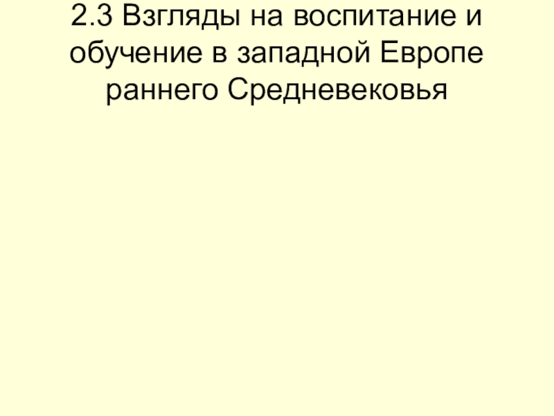 Слайд 142.3 Взгляды на воспитание и обучение в западной Европе раннего Средневековья